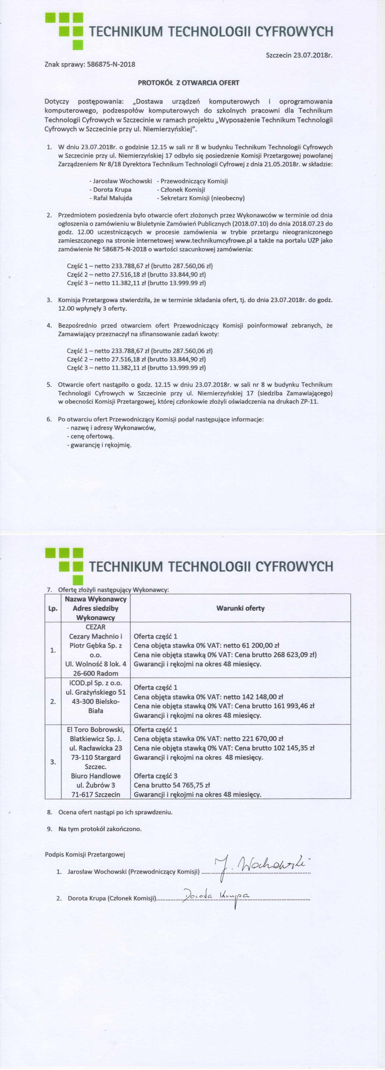 PROTOKÓŁ Z OTWARCIA OFERT: